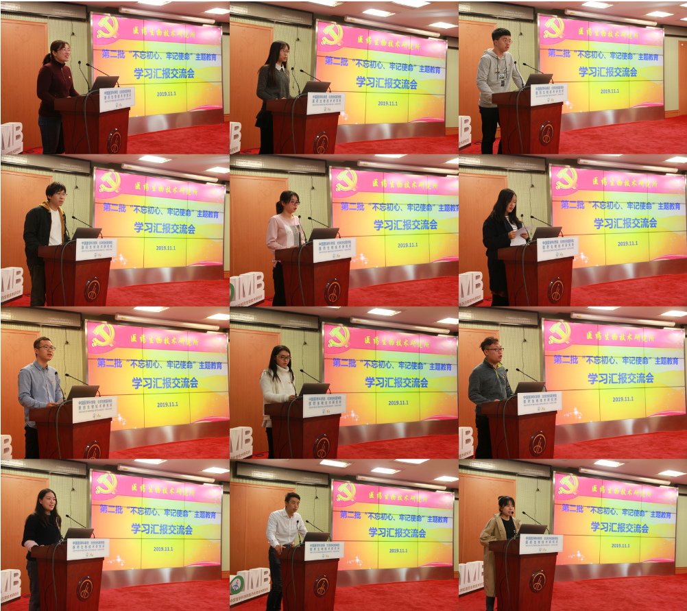 为增强学生党员的学习效果,所党委以支部为单位,将学生党员分成3个学习小组,结合“两学一做”学习教育常态化制度化,依托“三会一课”、主题党日等,组织学生党员认真开展“不忘初心、牢记使命”主题教育学习研讨。3个学习小组在前期自学和集中学习研讨的基础上,推荐出12位学生党员代表在学习汇报交流会上发言,与大家分享自己的所思所想所悟。他们结合自身学习、工作实际和社会热点问题,围绕参加“不忘初心、牢记使命”主题教育的感悟以及学习习近平总书记系列重要讲话精神的心得作了汇报交流发言,表示作为一名党员、学生、未来的科研工作者,要自觉用习近平新时代中国特色社会主义思想武装头脑,不忘初心,牢记使命,将小我融入大我,将个人梦融入中国梦,用实际行动践行医药工作者的责任与担当。
