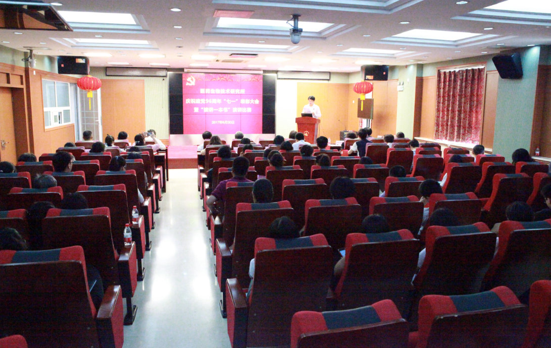 6月30日上午,药生所隆重召开庆祝建党96周年“七一”表彰大会暨“读讲一本书”演讲比赛。所领导班子成员、全体党员、受表彰的同志、入党积极分子、参加演讲的同志130余人参加会议。会议由党委副书记、纪委书记孙波同志主持。