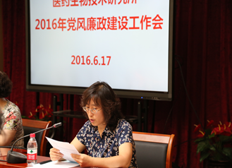 孙波同志宣读了《医药生物技术研究所2016年党风廉政建设工作任务分工》,要求各级领导和职能部门切实负起责任,把党风廉政工作任务落到实处,她还通报了多起违反中央八项规定的案例,希望大家引以为戒,警钟长鸣。