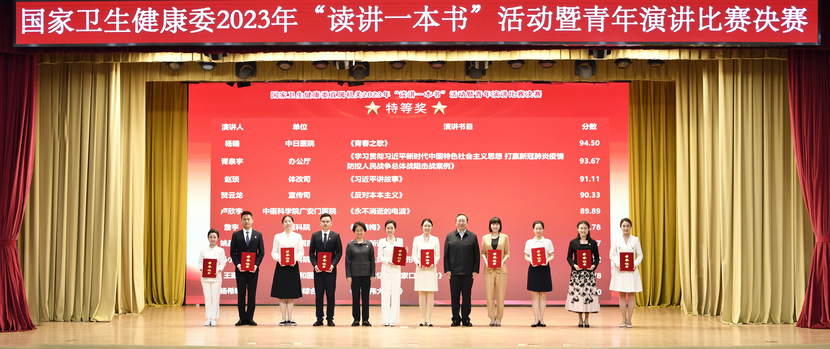 我所詹宇同志在国家卫健委2023年“读讲一本书”活动暨青年演讲比赛中荣获特等奖