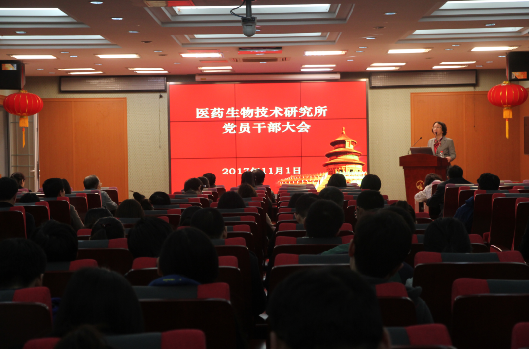 2017年11月1日上午,药生所召开全体党员干部大会,传达10月30日院校学习贯彻党的十九大党员干部大会精神,并对全所学习宣传贯彻党的十九大精神进行动员部署。所领导班子成员、党委委员、纪委委员、中层管理干部、全体党员等110余人参加。