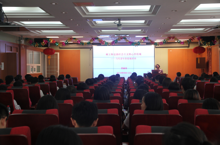 为进一步深入学习宣传贯彻习近平新时代中国特色社会主义思想党的十九大精神,凝聚全所学生和青年职工共同的价值追求,提高思想政治意识,9月12日上午,药生所举办研究生党建与思想政治教育“思政理论与国情时事”讲座,党委书记贾淑英做题为“树立和弘扬社会主义核心价值观——当代青年价值观培养”的辅导报告,全体学生和青年职工150余人参加学习。