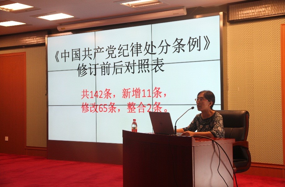 孙波 副书记带领大家学习了新修订的《中国共产党纪律处分条例》有关内容。通过《条例》修订前后对照表,详细解读新修订的《条例》及修订的亮点,并要求各支部认真组织学习,在全体党员中掀起学习热潮,做好宣传解读工作,扩大覆盖面和影响力,进一步增强党员干部的纪律意识和规矩意识。