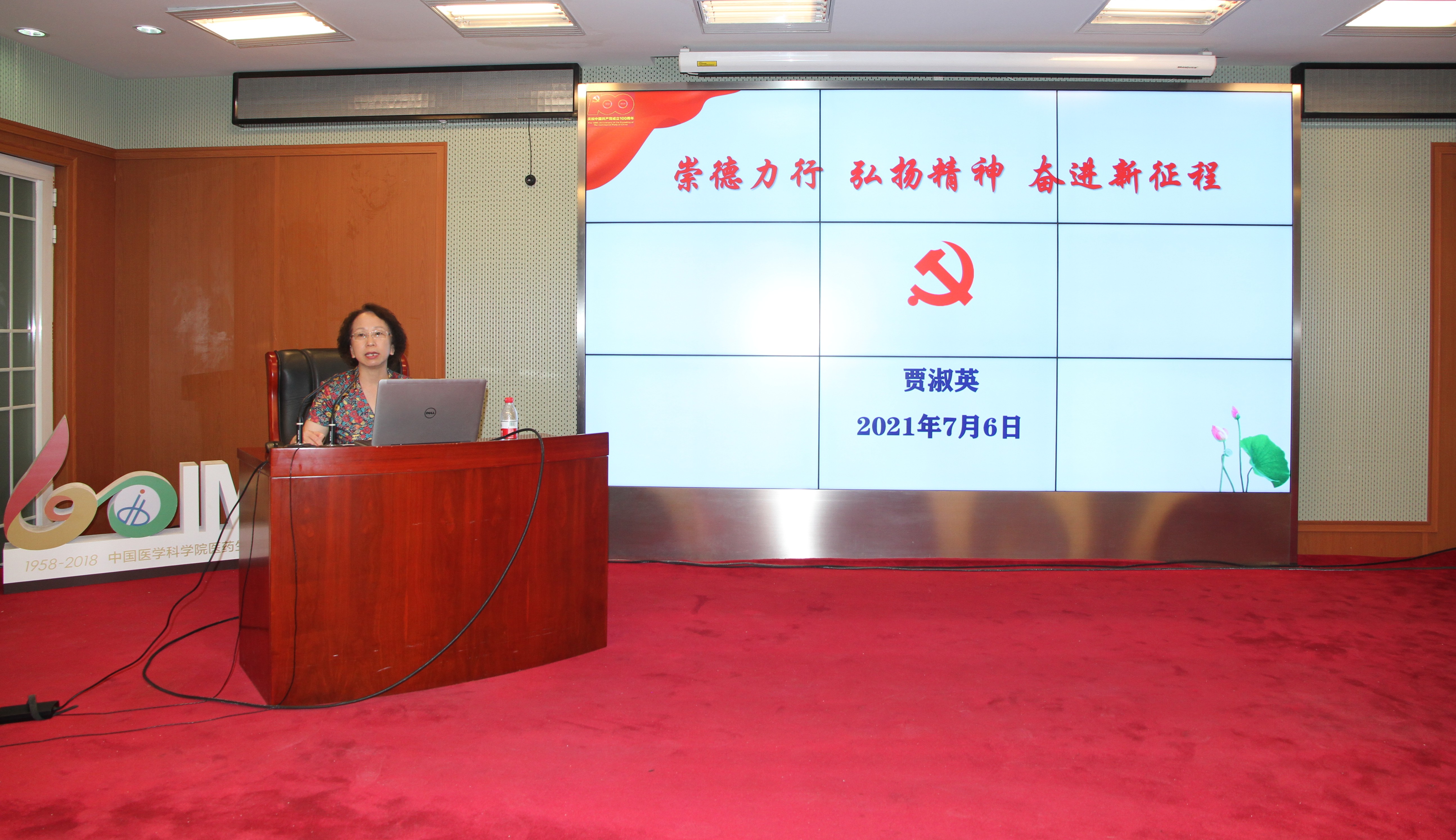 为扎实推进党史学习教育和师德专题教育,在党的百年诞辰之际,在学习贯彻习近平总书记在庆祝中国共产党成立100周年大会上的重要讲话精神热潮之际,7月6日上午,药生所党委书记贾淑英作了题为《崇德力行 弘扬精神 奋进新征程》的党史学习教育专题党课。党政班子成员、党委委员、纪委委员、中层干部、支部正副书记、全体研究生导师参加。