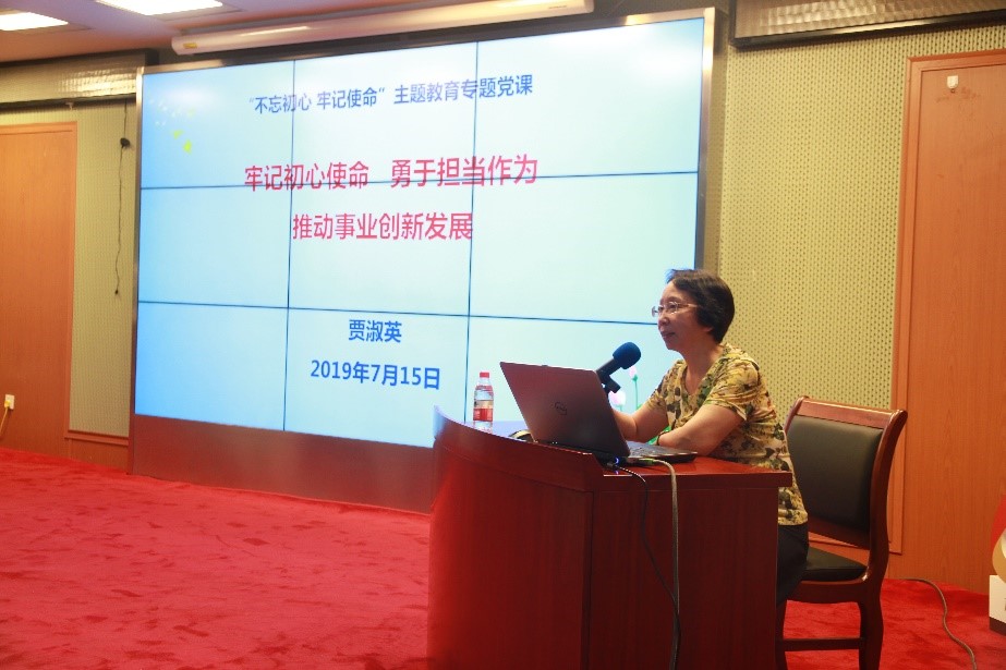 按照“不忘初心、牢记使命”主题教育的部署和安排,7月15日,药生所党委书记贾淑英同志作了题为“牢记初心使命、勇于担当作为,推动事业创新发展”的专题党课。院校“不忘初心、牢记使命”主题教育第三指导组张元、李娟两位同志出席会议,所领导班子成员、全体党员、中层干部、入党积极分子和民主党派负责人130余人参加聆听。