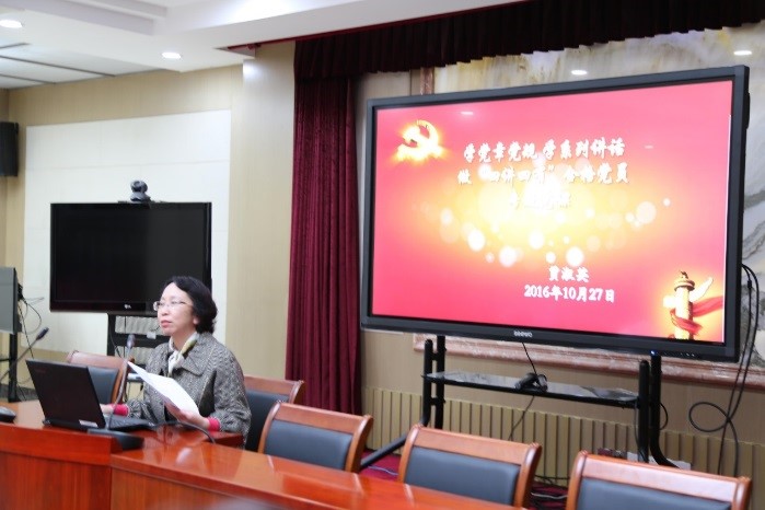 党委书记贾淑英在全所范围内讲党课的基础上,10月27日,又在机关一支部、机关二支部和后勤支部联学活动中,讲专题党课:《学党章党规、学习近平重要讲话、做“四讲四有”合格党员》。