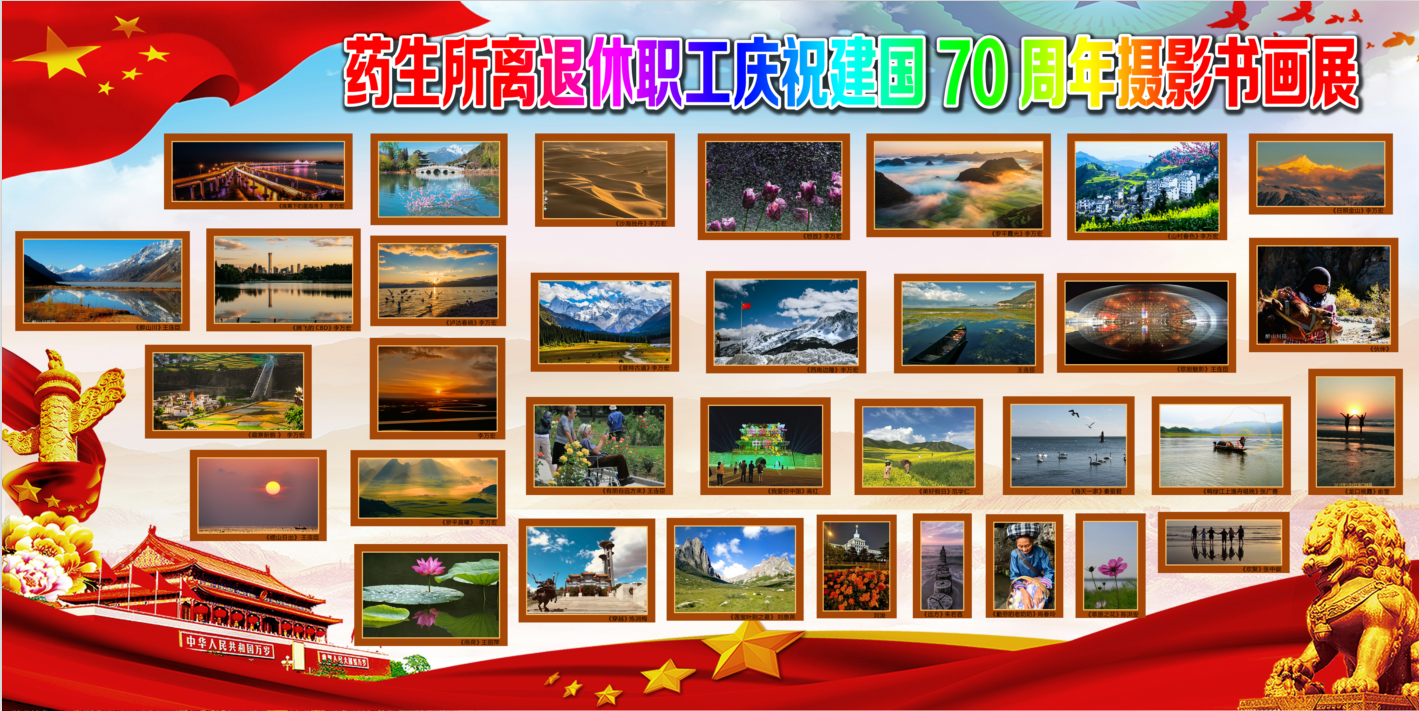为庆祝新中国成立70周年,引导广大离退休职工为党和国家事业增添正能量,展示老同志爱国情怀,药生所老干部科于2019年4月初组织开展《迎国庆“弘扬红色文化、描绘祖国美好蓝图”为主题的摄影书画展》。