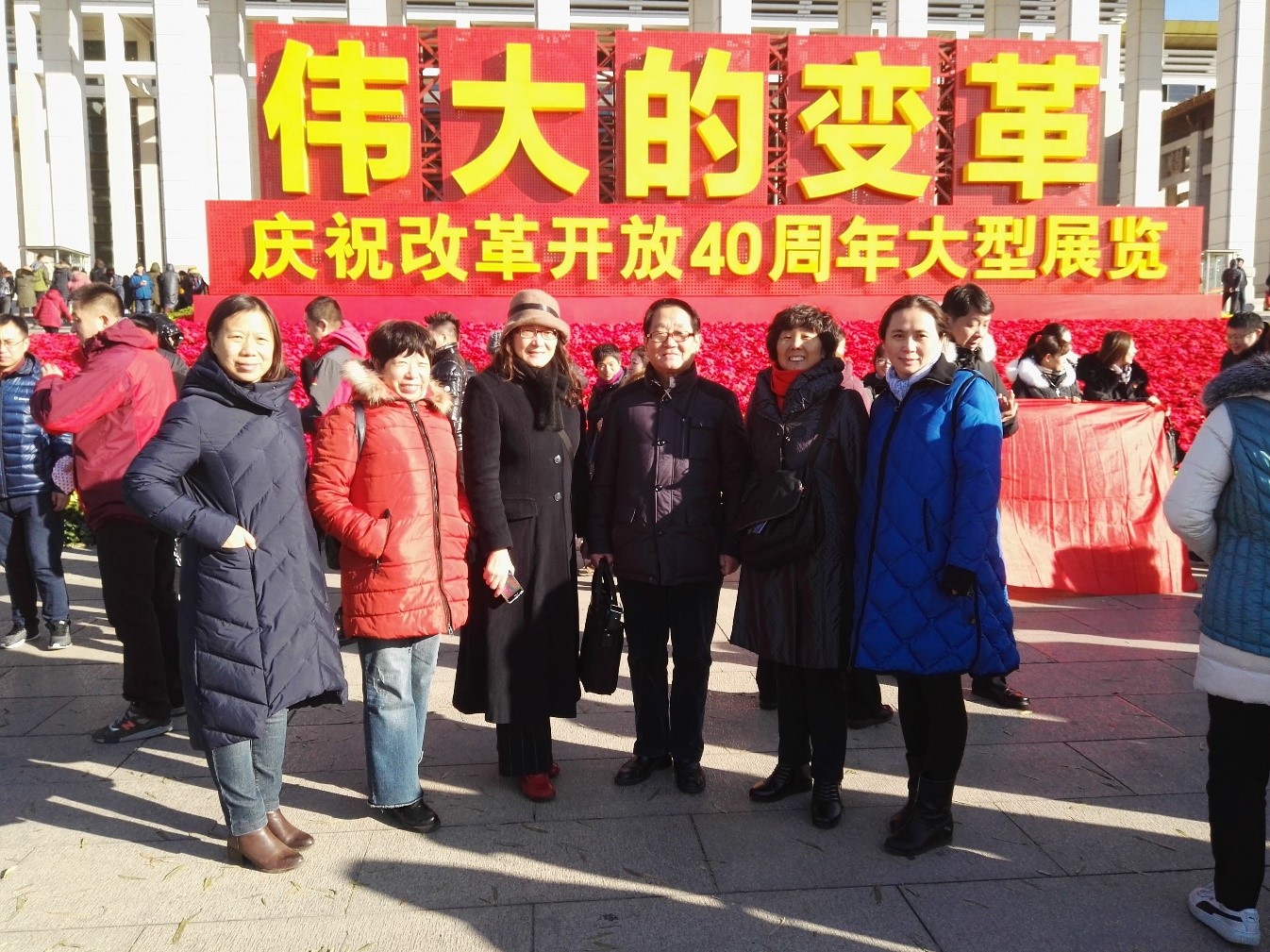 改革开放展览分为伟大的变革、壮美篇章、关键抉择、历史巨变、面向未来等几大主题展区,从人们的衣食住行到国家的科技进步,全方位的展示了改革开放40年特别是党的十八大以来人民群众生产生活的巨大变迁,中华民族迎来了从站起来、富起来到强起来的伟大飞跃。我们几位社员有幸一同见证了这四十周年国家伟大的变革,体会到了改革开放带来的巨变。相信在中国共产党的领导下,在党的十九大精神和习近平新时代中国特色社会主义思想的指导下,我们的祖国会更加强大,我们的明天会更加美好。