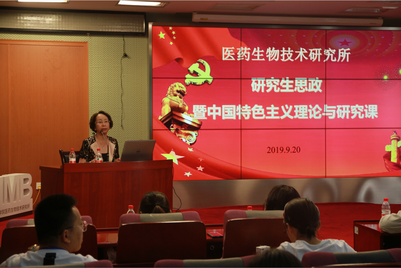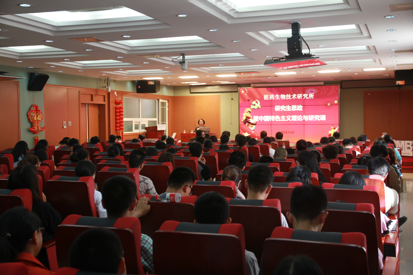 为进一步学习贯彻落实习近平新时代中国特色社会主义思想,引导学生和青年职工牢固树立“四个意识”、坚定“四个自信”、做到“两个维护”,厚植爱国主义情怀,9月20日,药生所党委书记贾淑英同志与学生和青年职工零距离接触,为他们上了一堂思政暨中特理论与研究课,全体学生和青年职工150余人参加学习。