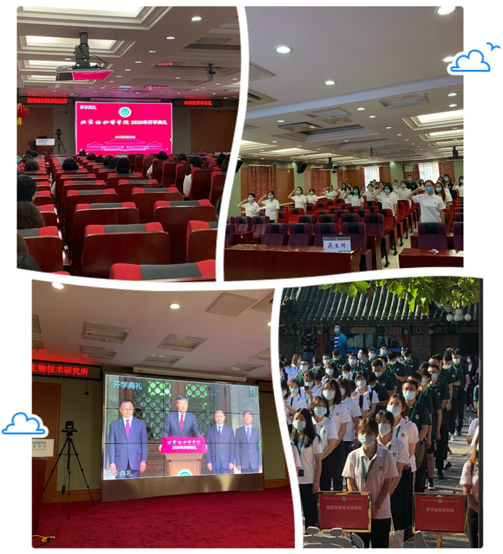 2020年9月10日,北京协和医学院举行2020年新生开学典礼。典礼严格落实常态化疫情防控要求,采取“线下主会场+线上分会场”模式举行。我所通过院校视频会议系统集中收看,9名新生代表前往主会场现场观礼。