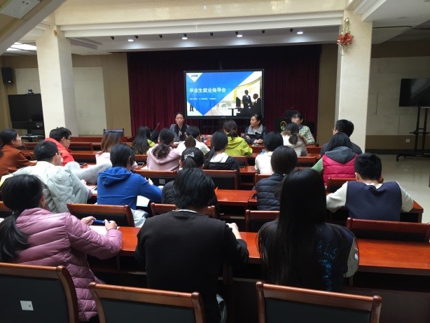 杜悦娇主任首先为同学们介绍了2019年的就业形势,重点强调:院校高度重视学生就业工作。毕业生应树立正确的择业观和就业观,准确定位,明确目标,充分结合自身实际,学会科学﹑合理﹑灵活地规划自己的职业生涯,积极就业。