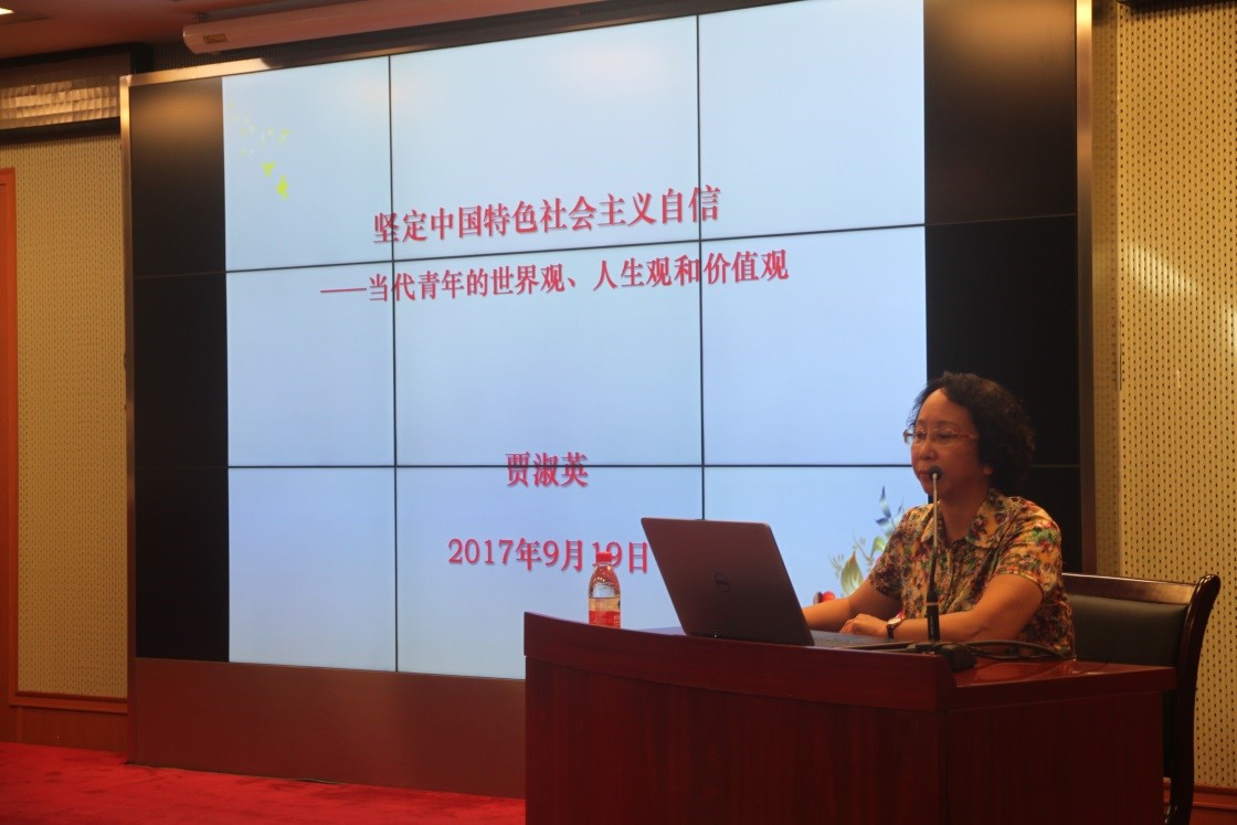贾书记从落实全国高校思政工作会议和中央相关文件精神、深入学习习近平总书记关于加强高校思政工作和当代青年树立正确理想信念及培育社会主义核心价值观的系列重要讲话入手,开门见山地指出当代青年学生要坚定理想信念,要坚定中国特色社会主义自信,要培养和树立正确的世界观、人生观和价值观。
