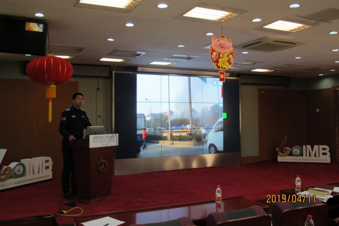 此次安全教育培训包括三部分,北京市综合应急管理平台寇晨飞教官、我所制剂室主任王玉成教授和病毒室李玉环研究员分别从消防安全、化学安全和生物安全角度授课。