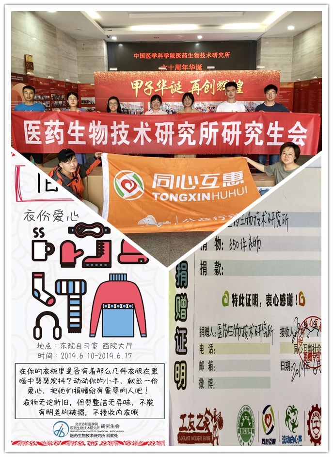 近日,药生所科教处联手研究生会与社会公益机构―“同心互惠”共同举办题为“衣心衣意-2019年毕业季爱心捐衣”活动。