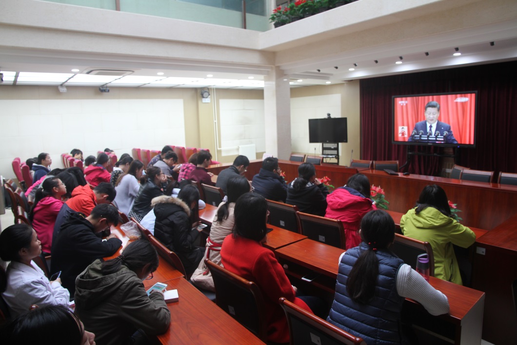 2017年10月18日上午9点,药生所党委组织全体党团员、教职工和学生分别在研究所西院二楼大会议室和教学厅地下教室集中收看党的第十九次全国代表大会开幕式盛况,认真聆听习近平总书记代表中共中央十八届委员会所作的报告。所领导班子成员、党委委员、中层管理干部、党支部书记、民主党派负责人与全体党团员、教职工和学生一起进行了收看。