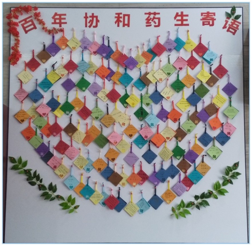 5月18日,走进医药生物技术研究所一楼大厅,一面鲜艳夺目的爱心墙,吸引了职工和学生驻足观看。这是我所教育科组织研究生开展的“百年协和药生寄语”活动制作的爱心寄语墙。一张张精美卡片,一句句简单的祝福,表达了身为协和学子的骄傲以及对北京协和医学院最真切的期望。150余名学生为协和母校及药生所献上了最真挚的祝福。