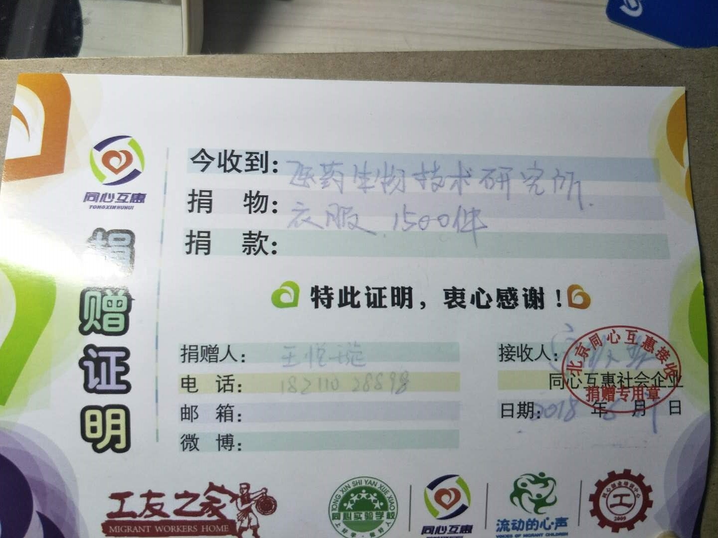 在2018届毕业生即将离校之际,医药生物技术研究所研究生会(以下简称研会)在科教处教育科的大力支持下,举办了一年一度的“2018届毕业季捐衣物活动”。该活动可以帮助毕业生捐赠带不走、穿不了的衣服,同时也可帮助师生回收旧衣物,既清理了衣柜,又奉献了爱心。