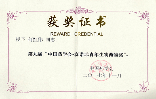 我所何红伟副研究员荣获2017年中国药学会-赛诺菲青年生物药物奖