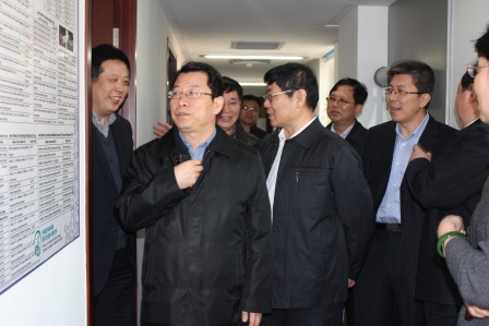 血液学研究所血液病医院党委书记、副所院长常子奎、办公室主任阎嶂松一同参观考察。