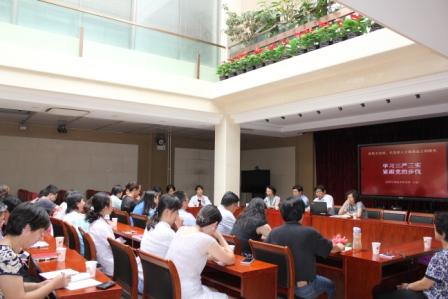 于书记作了“学习三严三实,紧跟党的步伐”的专题党课报告。于书记向大家介绍了党的“三严三实”专题教育活动开展的背景、目标任务和习近平总书记关于“三严三实”的相关论述。于书记具体阐述了民主党派和党外知识分子如何紧跟党中央步伐、提高个人综合能力的九个方面内容。他指出,作为个人,一定要具有坚定的理想信念,要有责任意识、奉献精神和创新思维,要勤于学习、勤于思考和善于总结,要敢于磨练,要凝心聚力和团结协作。所领导班子要坚决与党中央保持高度一致,坚决贯彻落实中央关于统一战线工作的政策和要求,坚持“三重一大”决策制度,坚持走调查研究和群众路线。