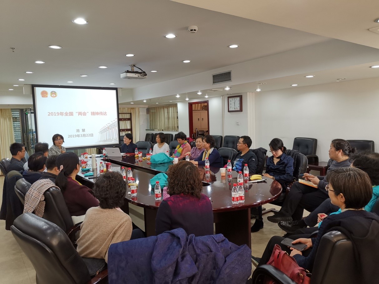 2019年3月27日九三学社医科院基层委员会在医科院图书馆六层会议室召开扩大会议。全国政协委员、医科院基层委员会主委池慧教授利用中午休息时间向大家传达全国两会精神。
