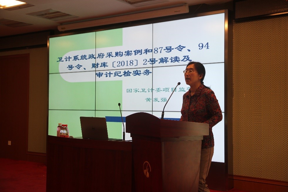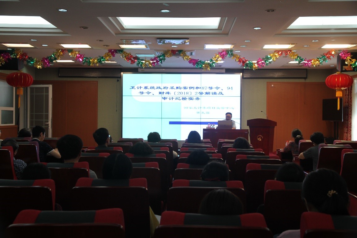 国家卫健委项目监管中心高级经济师、委审计委派办公室负责人、财政部政府采购评审专家黄发强老师做题为《卫计系统政府采购案例和87号令、94号令、财库〔2018〕2号解读及审计纪检实务》专题培训。在两个半小时的培训中,黄老师结合自己在政府采购评审工作中的阅历和经验,从集中采购、部门集中采购和分散采购的区别、政府采购和招投标的区别、政府集中采购的组织实施方式及规定、政府采购方式等方面做了生动形象的讲解,还对财政部第87号令和《关于完善中央单位政府采购预算管理和中央高校、中央科研院所科研仪器设备采购管理有关事项的通知》(财库〔2016〕194号)等政策法规进行了详细解读,并在培训最后环节对现场提问进行了详细解答。此次培训,内容丰富翔实、引人入胜、指导性强,受到大家的普遍欢迎。