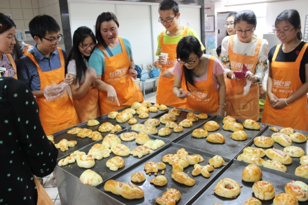 安琪酵母股份有限公司微生物营养事业部的工作人员首先介绍了安琪酵母及酵母浸出物在食品、特别是在微生物发酵行业中的应用,随后,在安琪e家北京体验中心师傅指导下,研究生和职工制作了面包、油条和米发糕等含酵母美食品种,亲身体会了酵母在食品生产与制作中的神奇作用。