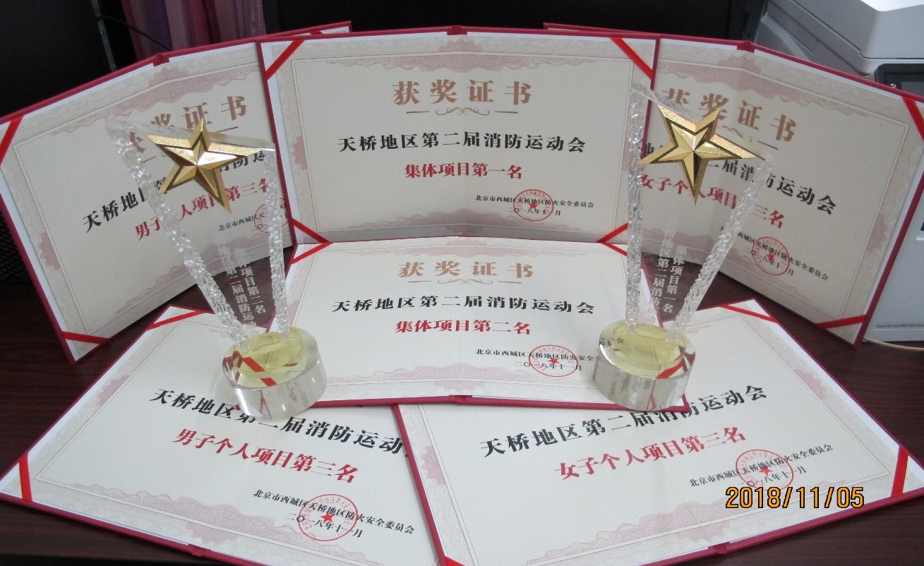2018年11月1日、2日,天桥街道联合西城消防支队在先农坛体育场举办了以“全民参与 防治火灾”为主题的2018年天桥地区第二届消防运动会暨“119” 消防宣传月活动。共有61支代表队、近400人参与,本次消防运动会共设2个集体项目,以及“整理水带”、“水带连接”、“消防绳结”、“快速着装”等8个个人项目。