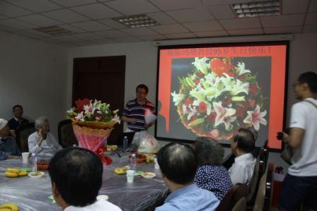 生日庆典虽然在研究所会议室举办,仅有茶水、鲜花、蛋糕和寿桃,但气氛热烈、亲切、感人。大家与陈教授像家人一样,相互亲密交谈,忆往昔展未来,对国家和研究所的发展充满希望。