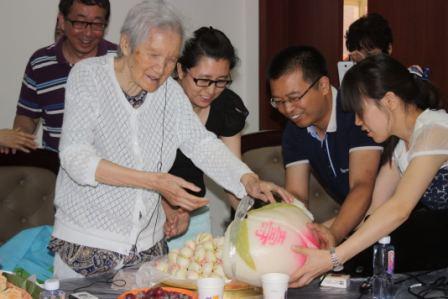 2015年7月3日下午,药生所为德高望重的陈鸿珊教授举办了一个隆重又朴素的生日庆典,庆贺她95岁华诞。中国医学科学院药物研究院蒋建东院长、原中国预防医学科学院院长曾毅院士、医药生物技术研究所甄永苏院士及其夫人陈妙兰教授、邵荣光所长、于滨书记、李卓荣副所长、贾淑英副书记、陈鸿珊教授的一些老同事和病毒室的老师们参加了庆典活动。