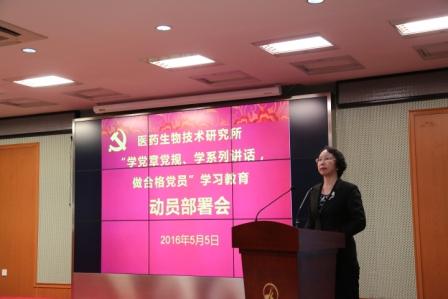 5月5日上午,药生所党委召开“学党章党规、学系列讲话,做合格党员”学习教育动员部署会,学习传达中共中央、国家卫计委和院校党委关于“两学一做”学习教育的实施方案和有关通知精神,全面动员部署研究所开展“两学一做”学习教育工作。党委副书记、纪委书记贾淑英同志主持会议并做了动员部署,研究所党政班子成员、全体党员、副处及副主任以上党外中层干部共130余人参加会议。